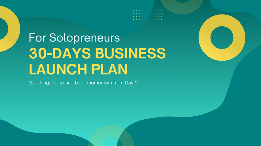 The 30-Day Launch Plan for Solopreneurs breaks down exactly what to do each day to get your business off the ground.